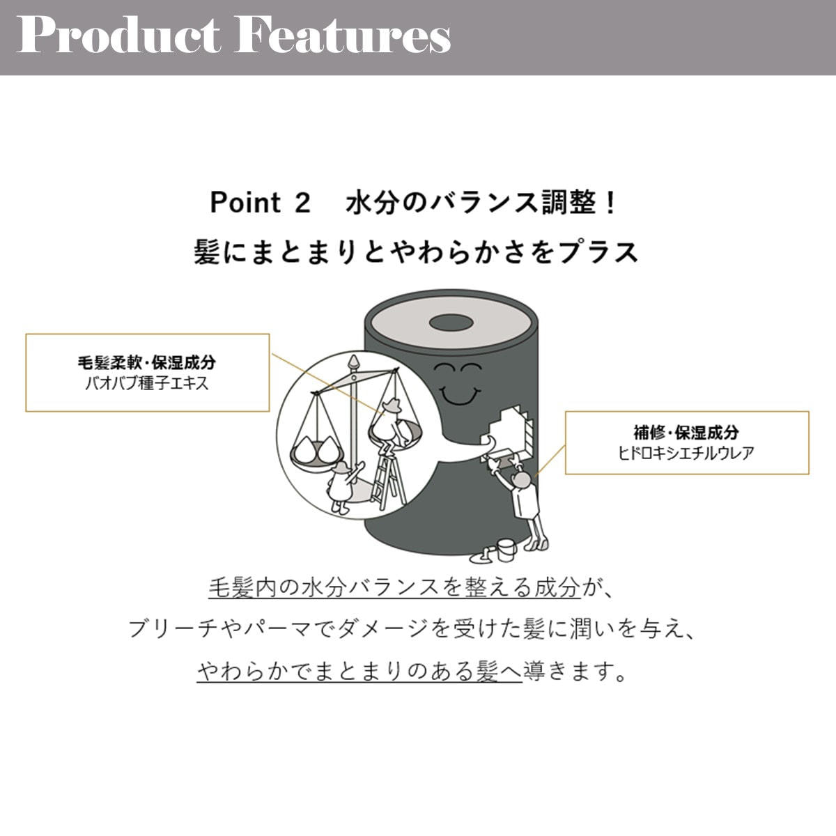 パルミチン酸エチルヘキシル、リンゴ酸ジイソステアリル、トリエチルヘキサノイン、スクワラン、メドウフォーム-δ-ラクトンステアロイルラクチレートNaクランベアビシニカ種子油、フィトステロールズ、セバシン酸ジエチル、ラウロイルグルタミン酸ジ(フィトステリル/オクチルドデシル)、トリ(カプリル酸/カプリン酸)グリセリル、ダイマージリノール酸ダイマージリノレイル、トコフェロール、香料